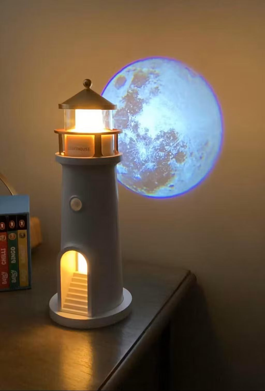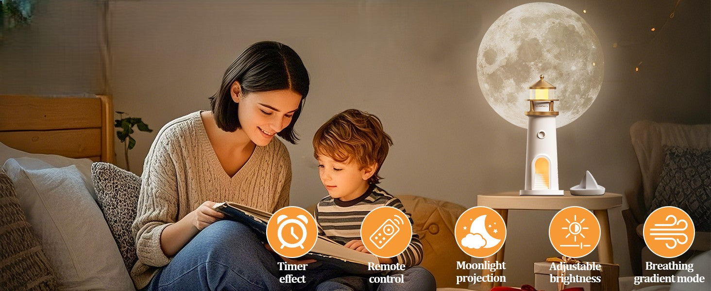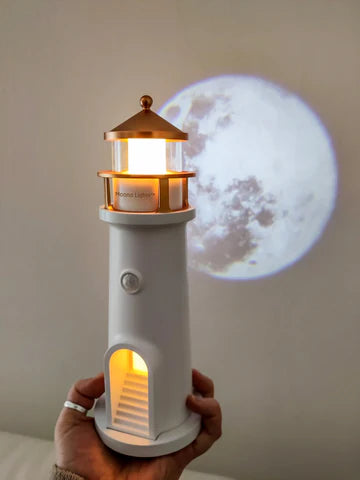 Its minimalist lighthouse design adds a peaceful charm — whether you place it on a nightstand, shelf, or side table..